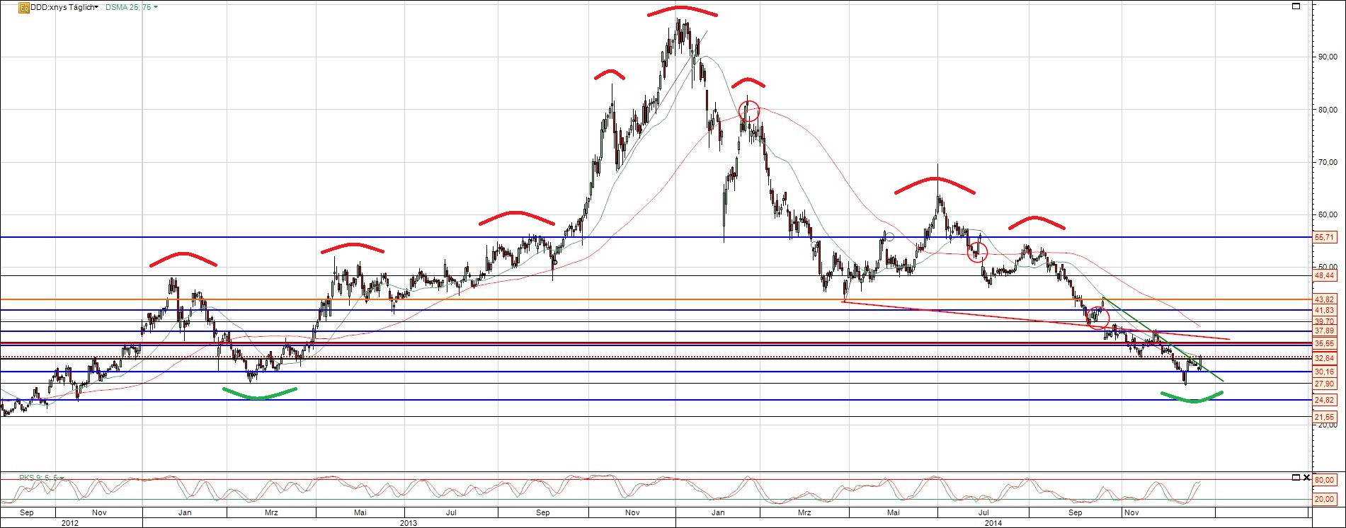 3D Systems Aktie Chart langfristig 29/12/2014 Die 3D Drucker Aktien zeigen kurzfristig wieder Lebenszeichen