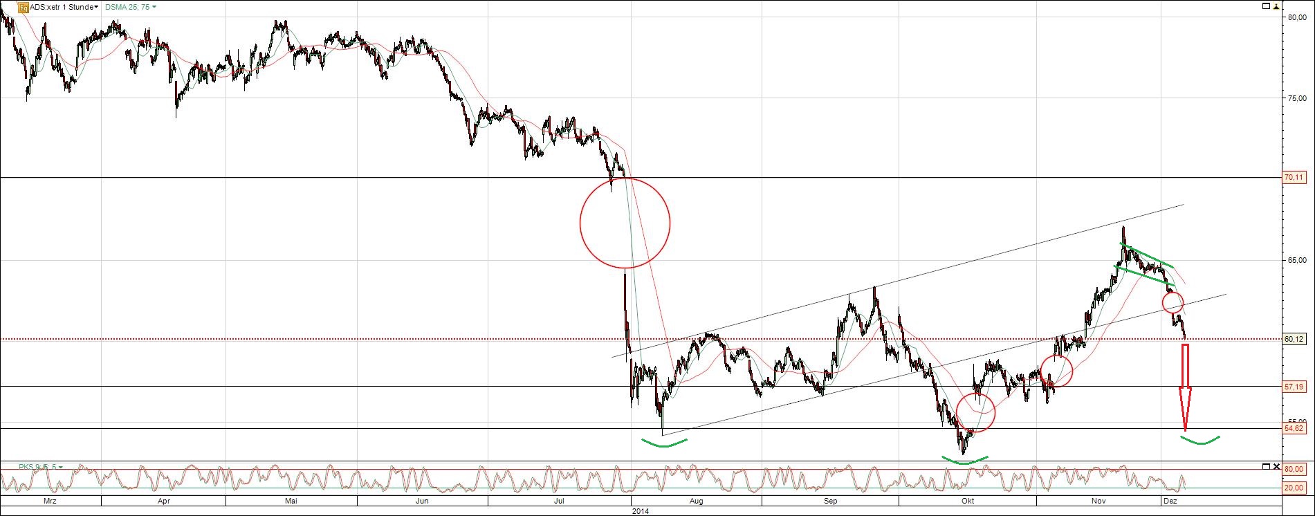 Die Aktie des Sportartikelherstellers macht weiterhin keinen besonders guten Eindruck. Die kurzfristige Erholung könnte sich als Dead-Cat-Bounce entpuppen- Zumal noch zwei Kurslücken auf der Unterseite auf Schließung warten..