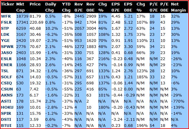 Es ist schon sehr merkwürdig das die chinesischen Solarwerte derart herabgestuft werden und die „hauseigene“ Firma First Solar, die eine Bewertung jenseits von gut und böse aufweist hier keine Erwähnung findet!