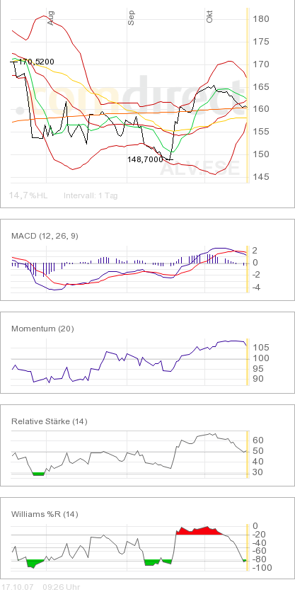 Auf jeden Fall eine spannende Rebound Story mit mindestens 50% Potenzial. Ich werde die Aktie täglich beobachten, und fange eventuell an unter 10,70 Euro erste Positionen aufzubauen! Am 04.11.2007 kommen die Q3 Zahlen, und die sollten auf jeden Fall noch abgewartet werden.