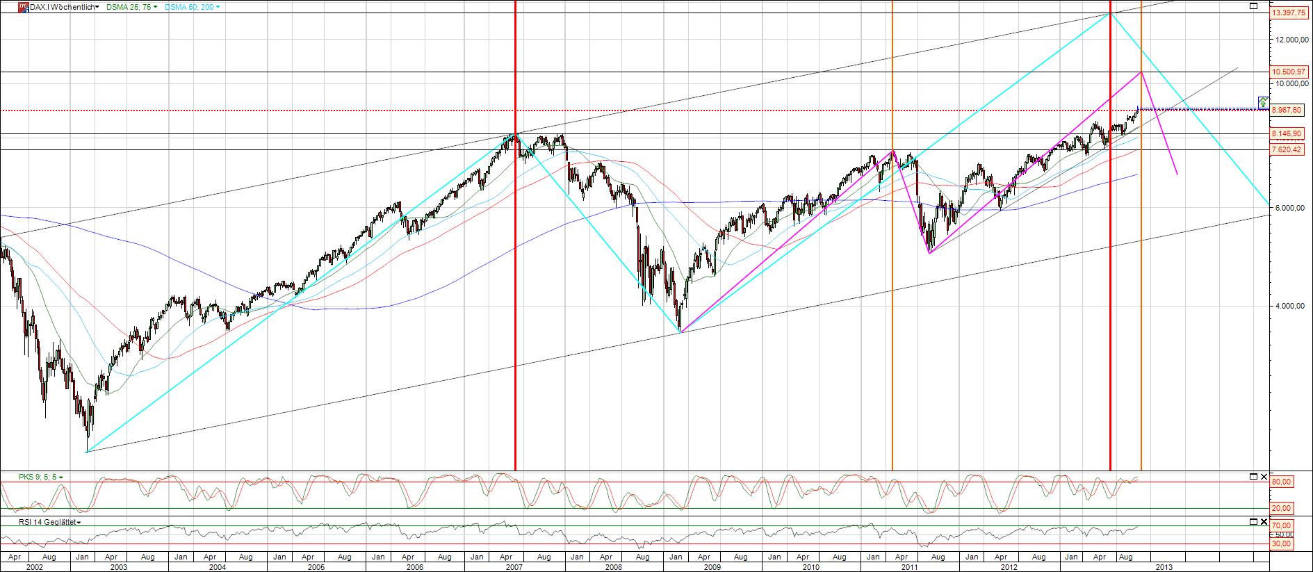 Dax Chart langfristig logarithmisch