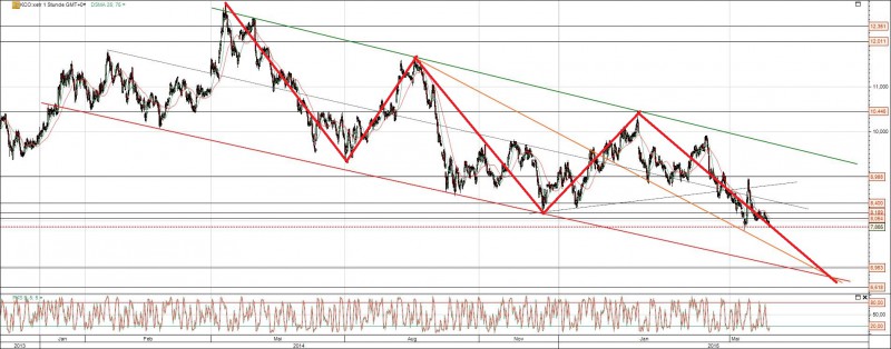 Vielleicht erinnert sich noch der ein oder andere Investors Inside Leser daran, dass ich vor fast zwei Jahren vor allzu viel Euphorie wegen der Übernahmegerüchte der Klöckner & Co. AG durch den Finanzinvestor Albrecht Knauf gewarnt hatte. Seitdem befindet sich die Aktie nun in einem mustergültigen Abwärtstrend. Zuletzt habe ich noch einmal darauf hingewiesen dass die Klöko Aktie maximal eine Halteposition ist, die aber durchaus noch ordentliches Risikopotenzial besitzt. Leider haben sich die damaligen Befürchtungen dann bewahrheitet, nachdem die Aktie inzwischen auch noch unter die wichtige Unterstützung bei 8,- Euro gefallen ist…