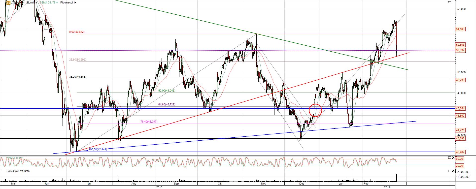 Lanxess Chart mit Trendlinien