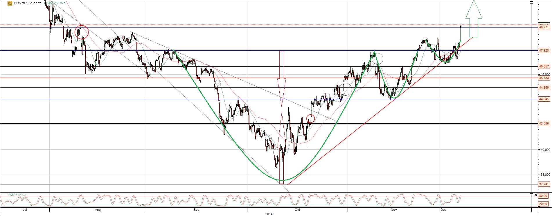 Die Leoni Aktie hat die jüngsten Verluste nun wieder vollständig aufgeholt und das offene Gap geschlossen. Weitere Kurssteigerungen sind hier nun sehr wahrscheinlich und ergeben sich aus der neuen charttechnischen Konstellation.